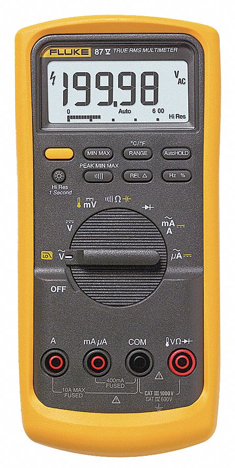 The fluke 87v industrial multimeter provides the resolution and accuracy to efficiently troubleshoot motor drives plant automation power distribution and electromechanical equipment even in loud high energy and high altitude locations.